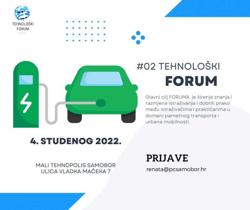 #02 TEHNOLOŠKI FORUM održat će se u petak, 4. studenog 2022. godine u Malom Tehnopolisu Samobor, Ulica Vladka Mačeka 7 pod pokroviteljstvom Zagrebačke županije i Grada Samobora s početkom u 10,30 h.