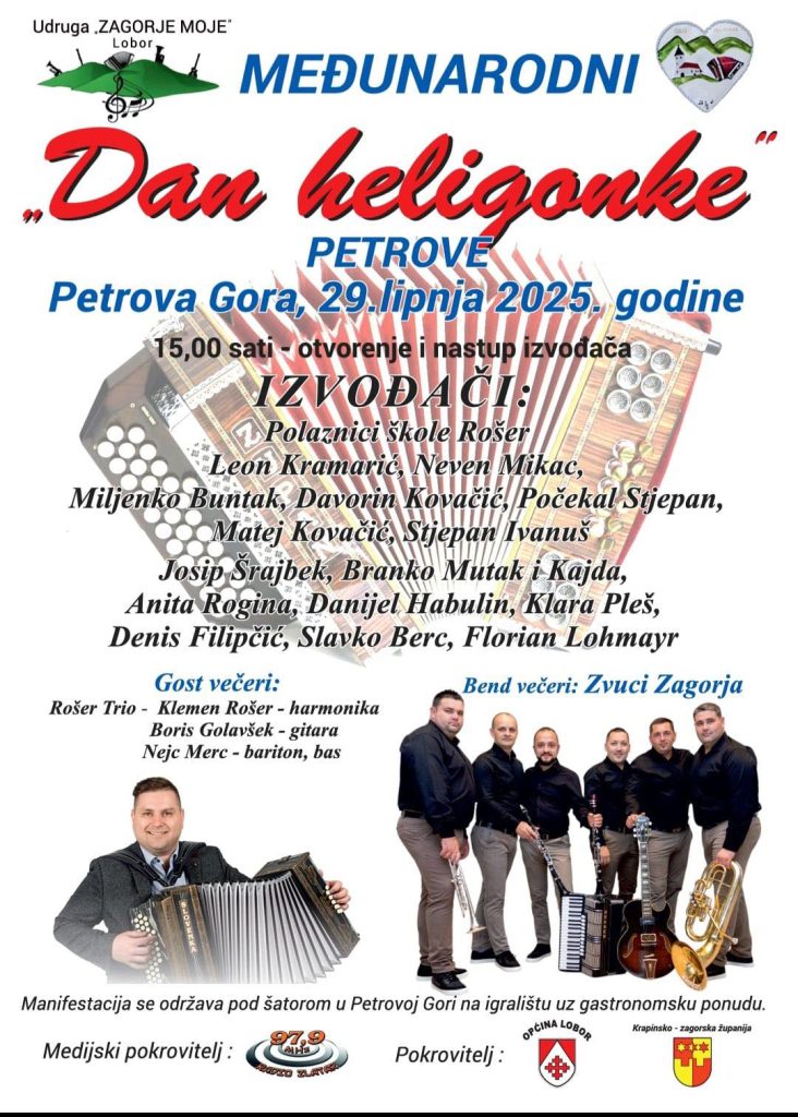 U nedjelju, 29. lipnja 2025. godine, u Petrovoj Gori u Općini Lobor održat će se četvrto izdanje međunarodnog festivala „Dan heligonke“, glazbene manifestacije koja iz godine u godinu okuplja sve veći broj izvođača i posjetitelja. Manifestaciju organizira Udruga „Zagorje moje“ Lobor uz potporu Općine Lobor i Krapinsko-zagorske županije, a program započinje u 15 sati.
