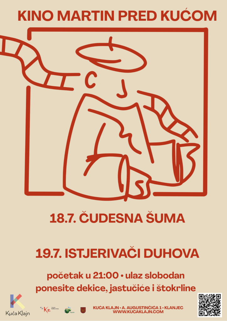 Obavijest o održavanju drugog dijela filmskog programa Ljetnog kina Martin pred Kućom Klajn u Klanjcu, u petak i subotu 18. i 19. srpnja 2025. godine.