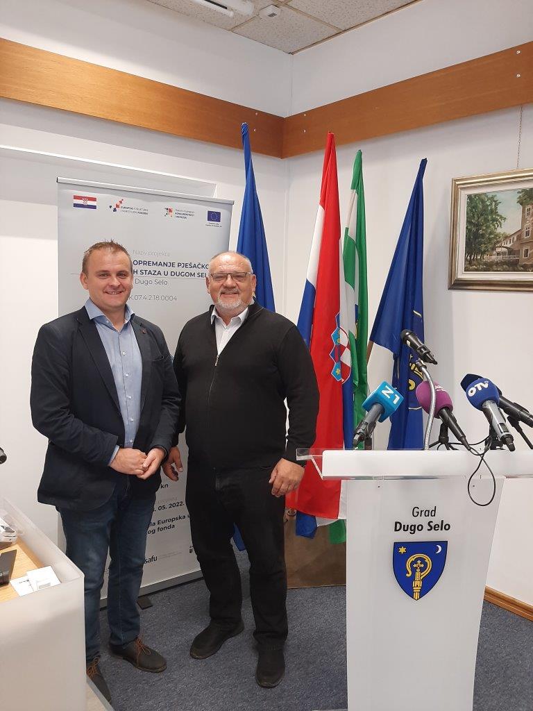 Grad Dugo Selo se prijavio na dostavu projektne dokumentacije za realizaciju projekta „Izgradnja i opremanje pješačko-biciklističkih staza u Dugom Selu“. Projektom je planirana izgradnja 5.992,43 metra novih pješačko-biciklističkih staza na širem području Dugog Sela. Povodom završetka realizacije projekta danas 28. rujna 2022. godine održana je završna konferencija za medije na kojoj je gradonačelnik Dugog Sela Nenad Panian naglasio: „Izgradnjom ovih biciklističkih staza stvorili smo preduvjete za bolji promet i povezivanje važnih institucija u gradu biciklističkim tj. pješačkim putem. Nakon završetka svih komunalnih infrastrukturnih radova u gradu, zaokružit ćemo cijelu priču zelenilom, solarnim klupama i punjačima, najmom električnih bicikala i romobila s punjačima i spajanjem ceste sa Martin Bregom. Nastojimo sav biciklistički i pješački promet preusmjeriti na manje prometne ceste kako bi povećali sigurnost“. Dodao je kako s ovim projektom ne staju, već nastavljaju sa svim planovima i projektima za daljnje povezivanje svih dijelova grada u cjelinu i sa stvaranjem prometno efikasnog i ekološkog grada. „Za realizaciju čekamo sredstva EU fondova iz novog programskog razdoblja. Sve radimo kako bi Grad Dugo Selo za 10 godina bio zeleni tranzicijski grad s mladim obiteljima –žila kucavica nadomak glavnog grada u kojem ljudi rade, a život žive na atraktivnoj lokaciji koja im pruža sve što im treba“, zaključio je Panian.