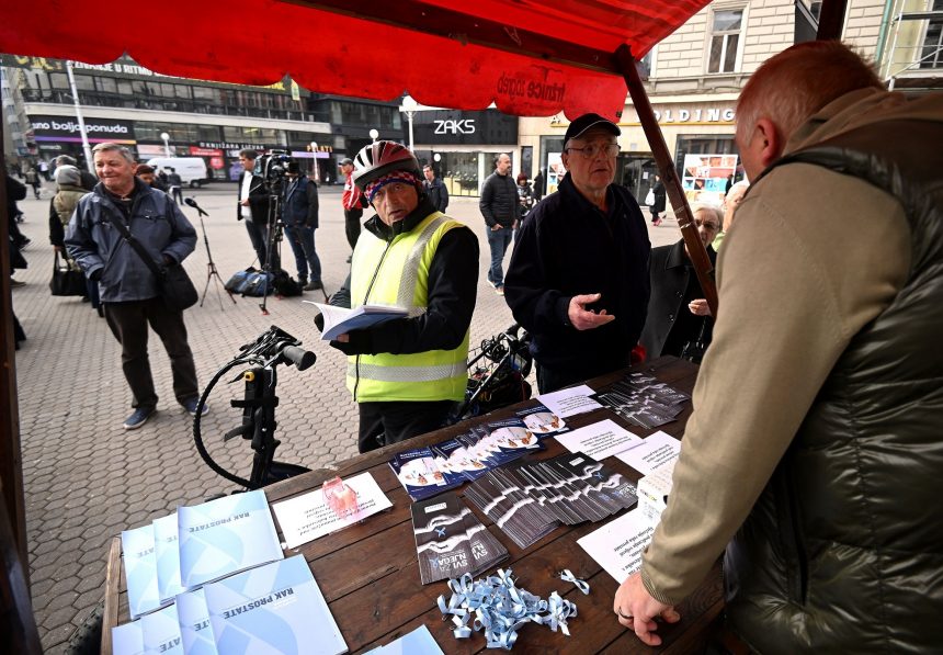 12.11.2022., Zagreb – Na trgu bana Josipa Jelacica Hrvatsko drustvo bolesnika s rakom prostate organizira akciju „Svi za njega“.