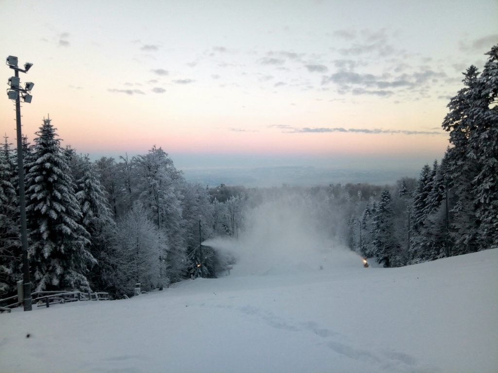 Od nedjelje ujutro krenulo je zasnježenje sljemenskog Crvenog spusta snježnim topovima. Temperature su, osobito danas i sutra, vrlo pogodne za proizvodnju snijega te se spuštaju čak i do 7 stupnjeva Celzijevih ispod ništice. Dodatno je na Sljemenu palo 15-ak centimetara prirodnog snijega.