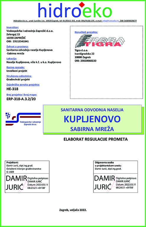 Privremena regulacija i obilježavanje gradilišta odnosi se konkretno na izvođenje radova u zoni izgradnje Sanitarna odvodnja (kanalizacija) naselja Kupljenovo na području Grada Zaprešića pri čemu se očekuje da će radni strojevi koristiti slijedeće ulice: Bregovita ulica, Školska ulica, Ulica Ljudevita Gaja, Ulica braće Tucman, Banska ulica, Duga ulica i Košćakovec ulica.