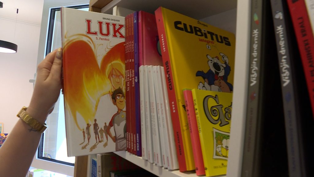 ” Što se tiče posuđivanja od strane djece, oni su pak najviše posuđivali stripove. Kao što možete vidjeti police sa stripovima su podosta ispražnjene. Posuđivani su poznati stripovi poput Čovopas, Gregov dnevnik i slični. Zanimljivo je da su i oni stariji posudili podosta stripova poput Alana Forda.” rekla je Korina Grbeša Katanec.