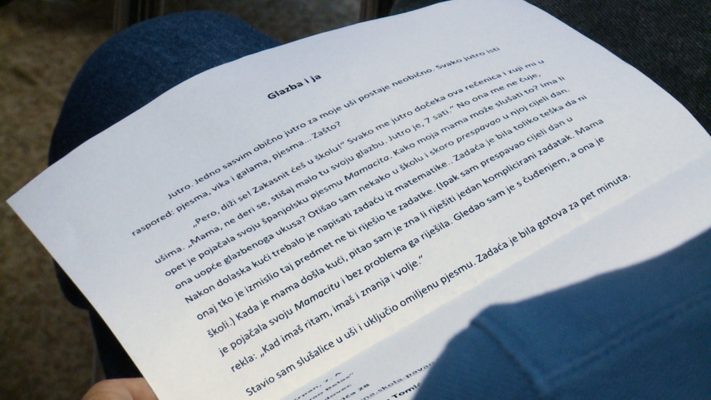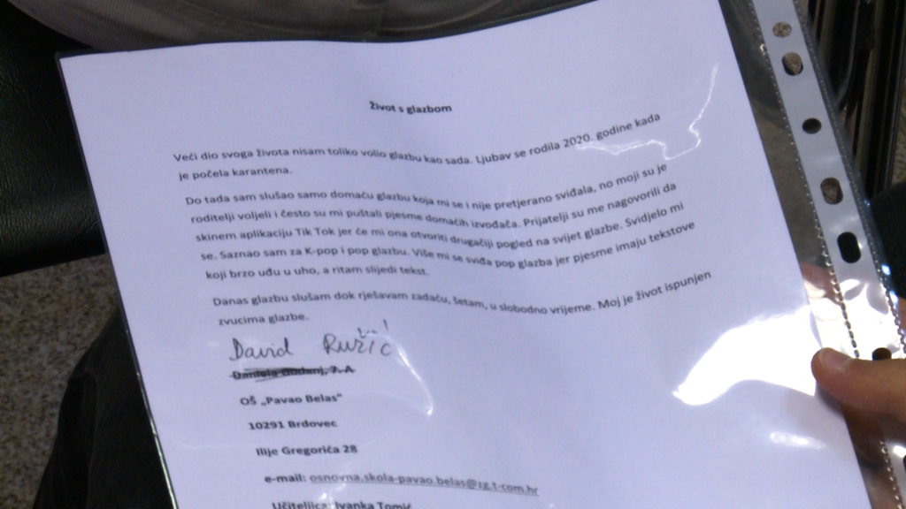 David Ružić, učenik Osnovne škole “Pavao Belas”, na ovaj Susret Ivice Kičmanovića prijavio je svoj pisani rad. “Pisao sam o životu s glazbom i kako ona na isti utječe”, rekao je.