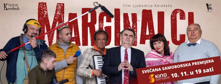Svečana samoborska premijera hrvatskog filma MARGINALCI, nove komedije, glumca i redatelja Ljubomira Kerekeša, bit će održana u četvrtak, 10. 11. 2022. u 19 sati, u Kino dvorani Hrvatskog doma.