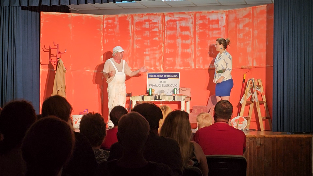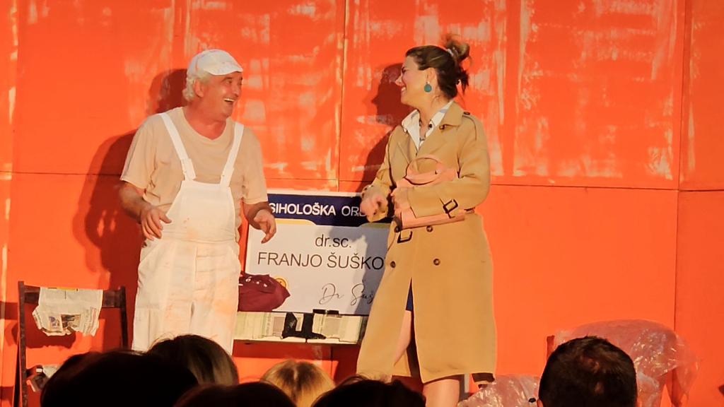 “Baš nam je bilo lijepo i baš smo uživali. Zapravo smo odigrali sjajnu predstavu. Preznojili smo se, ali mislim da je svima bila jedna prekrasna nedjeljna večer. Priča je to u kojoj dođe do jedne zabune. Uvijek je tako. Mislim da se nikomu u životu nije dogodilo da se nije zabunio, ili opasno zabunio kao u ovoj predstavi”, rekla je glumica koja je uz Ljubomira Kerekeša na pozornici nasmijala sve u publici.