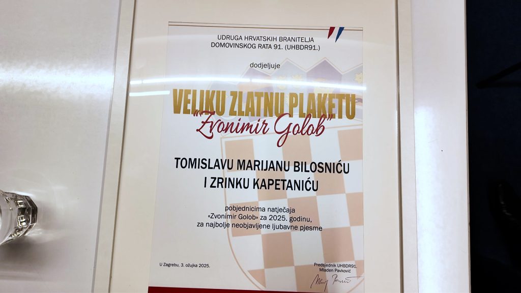 TAGGED: Tomislav Marijan Bilosnić, Udruge hrvatskih branitelja Domovinskog rata 91, Velika zlatna plaketa dodijeljena dvojici laureat, Zagreb, Zrinko Kapetanić