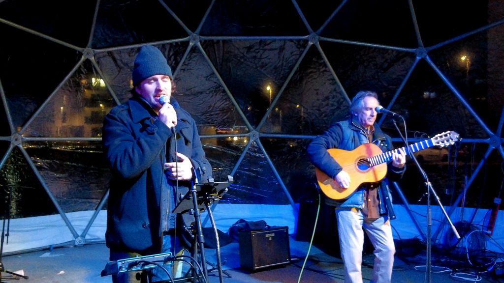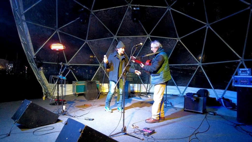 Ovi zagrebački umjetnici zabavljali su prisutne na šetnici u sklopu Adventa u Zaprešiću. Sjaj je bio u očima obojice. Krešo je ipak malo stariji i iskusniji umjetnik, a usto je tehničar u Pučkom otvorenom učilištu u Zaprešiću. Kilometražu i godine njegova kralješnica, kaže, dobro podnosi.