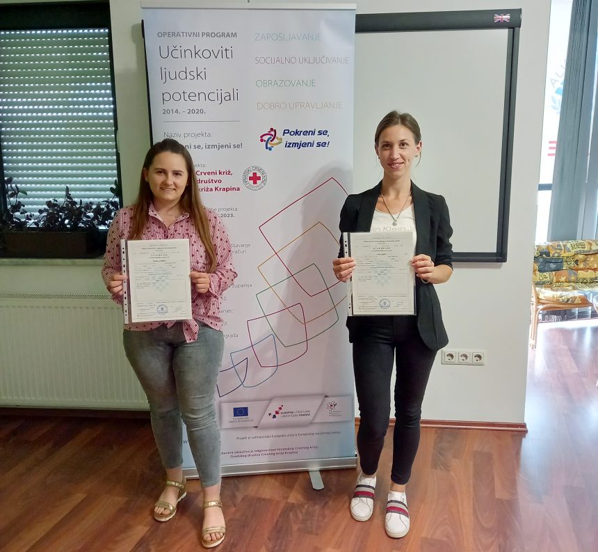 U srijedu 08. lipnja 2022. godine održana je dodjela uvjerenja o osposobljavanju za zanimanje njegovateljice starijih i nemoćnih osoba. Program osposobljavanja počeo je u veljači 2022. godine i trajao je ukupno 500 sati, od čega 170 sati teorijske nastave, 50 sati vježbi i 280 sati praktične nastave. Program je odobren od Ministarstva znanosti, obrazovanja i sporta, a provodilo ga je Učilište Piramida znanja iz Zaboka. U sklopu projekta „Pokreni se, izmjeni se!“ osposobljavanje su završile dvije polaznice. Nakon uspješno završenog osposobljavanja program se upisuje u e-radnu knjižicu polaznica koje će time biti konkurentnije na tržištu rada, a stečena znanja i vještine pridonijeti će pronalasku željenog zaposlenja. Osim troška verificiranog programa osposobljavanja, polaznicama je bio vraćen i trošak dolaska/odlaska na osposobljavanje.